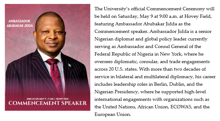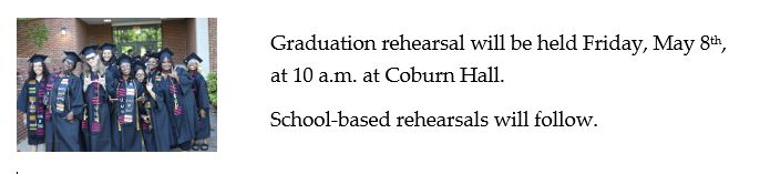Regalia should be worn with limited jewelry. Oversized earrings, bangles, necklaces, pins, and other pieces are inappropriate. Do not bring/wear purses, flowers, sorority/fraternity Kente cloth stoles, corsages, ribbons, scarves, and the like. Cellphone use is prohibited during the processional and recessional at Hovey Field and school locations. Failure to adhere to these guidelines may lead to your removal from the processional.